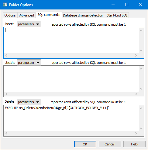 If you want to use a specific SQL Command for Insert, Update or Delete SQL statement, enter the SQL in the Insert, Update or Delete edit box.